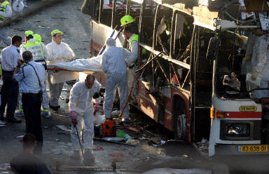 耶路撒冷市一輛公共汽車當(dāng)天在耶路撒冷最繁華的海法大街上發(fā)生爆炸,造成至少7死30傷。