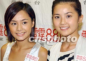 香港音樂組合Twins六月十二日接受香港商臺(tái)節(jié)目訪問。錢興強(qiáng) 攝