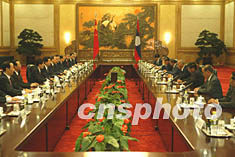 胡錦濤贊同坎代對發(fā)展兩黨兩國關(guān)系的建議。他表示,中方愿加強兩黨兩國領導人的互訪和會晤,適時就共同關(guān)心的問題交換意見,加強治黨治國理論和經(jīng)驗的交流,共同探討社會主義理論和實踐遇到的新情況和新問題,加強兩國在經(jīng)貿(mào)及其他領域的合作,不斷提高合作效率,把長期穩(wěn)定、睦鄰友好、彼此信賴的中老全面合作關(guān)系推向新的發(fā)展階段。