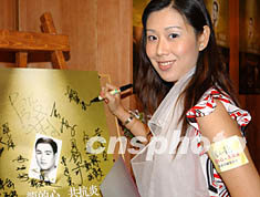 曾獲香港國際親善小姐稱號的殷莉,六月十四日出席在香港舉行的「龍的心、共抗炎,李小龍慈善珍藏電話卡公開發(fā)行」活動。錢興強(qiáng) 攝