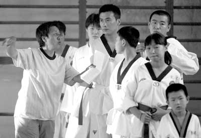 一大早,記者就趕到什剎海體校。道館外,一幫跆拳道館的學(xué)員們?cè)缫褤Q好了行頭,等著他們的“同學(xué)”柳云龍的到來。盡管演員們還沒有來到現(xiàn)場(chǎng),可是跆拳道館內(nèi)攝影、燈光、錄音等幕后工作人員卻已經(jīng)把一切準(zhǔn)備工作完成?赡苁菐滋靵淼膭陬D,大家都休息不好,場(chǎng)邊的椅子上一個(gè)小伙子睡著了。劇組周小姐說:“我們今晚還要忙到夜里一點(diǎn)!彪m然這幾天非典疫情已經(jīng)得到控制,但是劇組為了防患于未然,還是立下了一個(gè)規(guī)矩:拍攝時(shí),現(xiàn)場(chǎng)不得超過50人,而此前所有的人在進(jìn)學(xué)校大門時(shí)已經(jīng)測(cè)過了體溫。