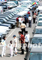 六月中旬,北京市民攜家?guī)Э谠诒狈狡囀袌?chǎng)選購(gòu)汽車。車市層出不窮的新面孔和經(jīng)濟(jì)型轎車的價(jià)格一降再降,極大地刺激著消費(fèi)者的購(gòu)車欲望,使北京各汽車銷售市場(chǎng)又出現(xiàn)年初如火如荼景象。中新社記者:王麗南