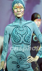 2003年6月17日,香港理工大學紡織及制衣學系24位學生在香港舉行的畢業(yè)時裝展上,展示精心設計及縫制的系列作品。中新社記者: 錢興強