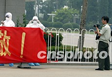 解放軍小湯山醫(yī)院將在20日送走最后一批SARS康復(fù)患者后結(jié)束光榮使命,18日軍方攝影師在隔離區(qū)認真記錄該醫(yī)院的最后時刻。中新社記者:任晨鳴