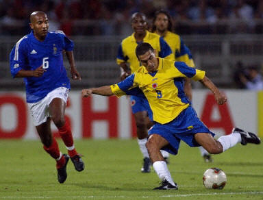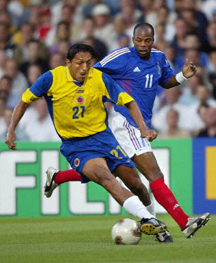 哥倫比亞隊目前正處于進球荒,在這場比賽之前,該隊已經(jīng)有5場比賽沒有入球。不過本場比賽面對衛(wèi)冕冠軍法國隊,他們卻絲毫沒有表現(xiàn)出弱隊的樣子。法國隊缺少了中場大將齊達內(nèi)和維埃拉,球隊進攻組織有些凌亂。上半場,場上局面僵持,法國隊也只有一兩次像樣的進攻。