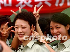 參加北京小湯山戰(zhàn)地醫(yī)院抗疫會戰(zhàn)的解放軍三軍白衣戰(zhàn)士,完成任務后拍照留念,六月中下旬準備分批撤離。中新社記者:賈國榮