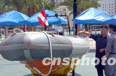 2003年6月22日,香港警務(wù)處在香港維多利亞公園舉行的“同心攜手畫(huà)出彩虹”嘉年華活動(dòng)上,展示警用“海騎式硬體脹氣艇”。中新社記者 錢(qián)興強(qiáng)