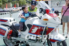 2003年6月22日,香港警務(wù)處在維多利亞公園舉行的“同心攜手畫(huà)出彩虹”嘉年華活動(dòng)上,展示警用電單車(chē)。中新社記者 錢(qián)興強(qiáng)