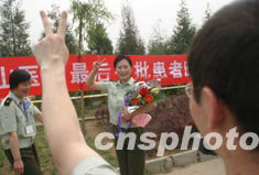 警衛(wèi)北京小湯山專(zhuān)治非典戰(zhàn)地醫(yī)院五十余天的武警官兵,在病人全部康復(fù)出院后,慶賀勝利完成任務(wù)。中新社記者:賈國(guó)榮