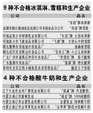 中新網(wǎng)6月23日電 北京娛樂信報(bào)今天引述中央電視臺(tái)的消息稱,國家質(zhì)檢總局昨天公布冰淇淋、雪糕、酸牛奶質(zhì)量抽查結(jié)果:冰淇淋和雪糕的抽樣合格率是71.1%,酸牛奶抽樣合格率為84.1%。