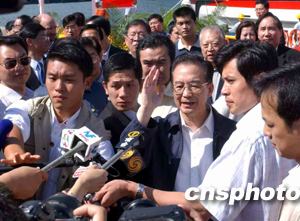 今天的葵涌碼頭一如往常一樣繁忙,人們?yōu)橛訙丶覍毜牡絹,鋪上了紅地毯,擺上了鮮花,掛起了歡迎的條幅。香港長實集團(tuán)主席李嘉誠及副主席李澤鉅到碼頭迎候溫家寶一行。