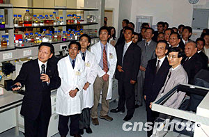 六月三十日,國務(wù)院總理溫家寶參觀香港大學(xué)基因中心,并聆聽教授介紹,如何首先找到SARS冠狀病毒。中新社記者 潘索菲 攝