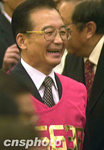 國務(wù)院總理溫家寶六月三十日下午到香港交易所參觀,港交所贈送一件編號“6638”的出市背心予溫家寶。中新社記者 錢興強 攝
