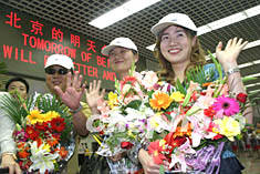 北京“雙解除”后的第一個(gè)境外旅游團(tuán)六月三十日抵達(dá)北京。由六十名韓國(guó)各界人士組成的旅游團(tuán)在北京機(jī)場(chǎng)受到人們的熱烈歡迎。中新社記者史利攝