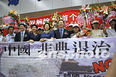 今年春天,北京突發(fā)“非典”疫情,首都旅游及相關(guān)產(chǎn)業(yè)遭受到了災(zāi)難性的打擊,來(lái)京的海外游客數(shù)量大幅下降,經(jīng)濟(jì)損失十分嚴(yán)重。為了盡快復(fù)蘇旅游市場(chǎng),北京市旅游局制定了一系列救市措施,其中就包括今天的第一團(tuán)歡迎儀式。