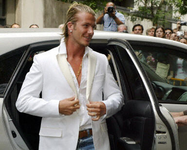 貝克漢姆當(dāng)天乘私人飛機(jī)從英國倫敦飛抵馬德里軍用機(jī)場(chǎng),在妻子和大兒子的陪同下,在馬德里一家醫(yī)院進(jìn)行了體檢。體檢后,皇家馬德里隊(duì)醫(yī)生說,貝克漢姆已經(jīng)順利通過了包括心臟功能、體力、腳、腿等各項(xiàng)檢查,他“壯得像頭!。