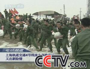 中新網(wǎng)7月3日電 據(jù)中央電視臺(tái)報(bào)道,今天下午1:30分,上海軌道交通4號(hào)線滲水事故險(xiǎn)情出現(xiàn)新變化,由武警戰(zhàn)士用了6個(gè)多小時(shí)圍起的防護(hù)堤突然坍塌。