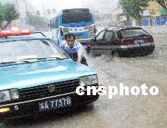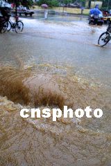 今天早晨可以看到,南京城區(qū)幾乎所有路面都有積水,不少地段水深超過半個(gè)自行車輪子,下關(guān)一些街道的積水甚至深達(dá)一米多,公交及出租車在水中緩慢移動(dòng)著,路邊隨處可見排氣管進(jìn)水拋錨的車輛。在新街口至中央路一線,多處路段水深過膝,不少趕時(shí)間的市民們艱難地涉水前行。