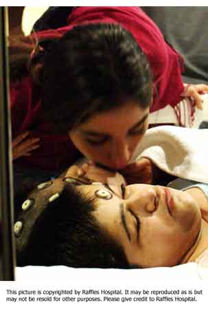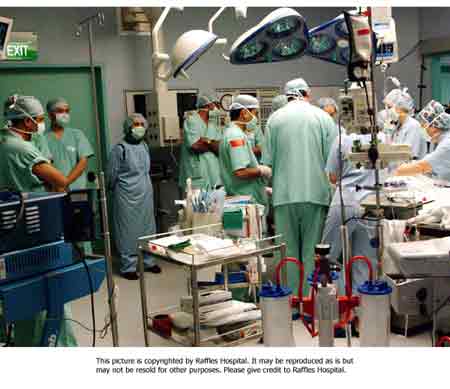 中新網(wǎng)7月6日電 新加坡萊佛士醫(yī)院新聞發(fā)布室7月6日消息,今天是伊朗連體姐妹“分首”手術(shù)的第一天,手術(shù)的現(xiàn)場情景如下:圖一是手術(shù)室里醫(yī)院們正在為姐妹做手術(shù);圖二為進(jìn)行手術(shù)前熱情的伊朗人為姐妹祝福;圖三為手術(shù)室忙碌的情景。(徐冰川/聞新芳)