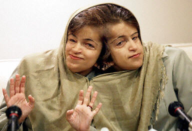 伊朗連體雙胞胎姐妹Ladan(拉丹,左) Laleh(拉蕾)7月6日在新加坡接受一項(xiàng)外科手術(shù),以便把她們連接在一起的頭部分開。