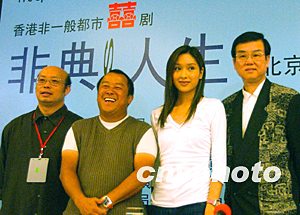 七月九日,曾志偉、楊恭如等攜反映非典時(shí)期香港市民生活的影片《非典人生》在北京舉行記者會(huì),慶祝北京“雙解除”。該劇是在關(guān)于內(nèi)地與香港經(jīng)貿(mào)更緊密合作協(xié)議簽署之后,第一部由內(nèi)地制作機(jī)構(gòu)和香港電影公司合作拍攝的影片。中新社記者:武仲林