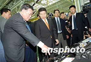 中新網(wǎng)7月10日電 在中國進(jìn)行訪問的韓國總統(tǒng)盧武鉉及夫人,昨天(9日)下午在北京市代市長王岐山的陪同下,興致勃勃地參觀北京現(xiàn)代汽車公司。據(jù)北京日報報道,盧武鉉講話說,來到北京現(xiàn)代汽車公司感慨萬千;韓國現(xiàn)代集團(tuán)與北京合作,是韓中雙方的幸運(yùn)。