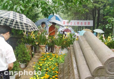 南京各界代表向鄭和墓敬獻(xiàn)了花圈,并繞墓三圈,表示祭奠。