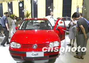 中國一汽-大眾新生產(chǎn)的世界經(jīng)典兩廂高爾夫轎車15日亮相第三屆中國長春汽車博覽會(huì),其發(fā)動(dòng)機(jī)排量有1.6、1.8、2.0三種,售價(jià)在15萬至18.5萬元人民幣,受到消費(fèi)者的關(guān)注。中新社記者:趙振清