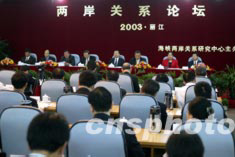 2003年海峽兩岸關系論壇十七日在云南麗江開幕,來自海峽兩岸、香港、澳門以及海外的百余位專家學者出席會議,這是“非典”疫情雙解除后,海峽兩岸間首次舉行的大規(guī)模交流活動。中新社記者:毛建軍