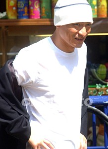 香港巨星劉德華,七月十九日冒酷署出席在香港舉行的“諾基亞6108揮筆舞劍創(chuàng)記錄”慈善活動(dòng)。 中新社記者:錢興強(qiáng)  香港五百人頭頂烈日揮寫(xiě)書(shū)法及耍太極劍。中新社記者:錢興強(qiáng)