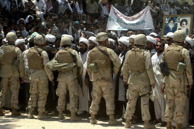 示威者在納杰夫市內(nèi)一主要清真寺門(mén)前集合,步行到由美國(guó)海軍陸戰(zhàn)隊(duì)把守的市政廳門(mén)前,并高呼“不要美國(guó)”等口號(hào)。有些憤怒的伊拉克人還向美國(guó)士兵投擲石塊,美軍沒(méi)有開(kāi)槍還擊。