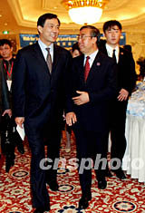 中國商務部部長呂福源、遼寧省省長薄熙來二十二日出席在大連舉行的“亞歐高層經濟論壇”,為即將舉行的亞歐經濟部長會議拉開序幕。中新社記者:鄭萍萍