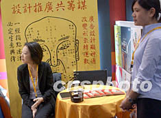 香港家庭用品、禮品及贈(zèng)品綜合展,七月二十三日在香港會(huì)展中心開(kāi)幕,圖為展會(huì)上一廣告商以看相指點(diǎn)迷津吸引參觀者。中新社記者:錢興強(qiáng)