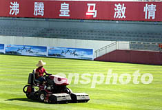 擁有貝克漢姆、羅納爾多、齊達內(nèi)等世界級球星的西班牙皇家馬德里隊將于二十五日到達昆明,進行為期一周的訓(xùn)練,工作人員二十四日在紅塔體育中心修整草坪迎接球星們的到來。毛建軍 攝