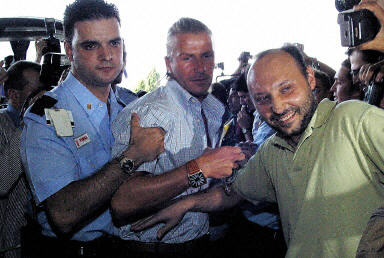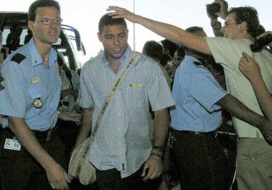 大批球迷到馬德里機(jī)場歡送皇馬亞洲之旅。羅納爾多受球迷“偷襲”。