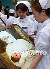 二十五日,北京地壇醫(yī)院獲贈一批反映該院醫(yī)務(wù)人員抗擊非典的攝影作品。北京地壇醫(yī)院是目前中國國內(nèi)唯一仍收治非典病人的定點醫(yī)院,部分醫(yī)務(wù)人員仍在抗擊非典第一線。中新社記者:張煒
