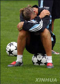 中新網(wǎng)7月28日電 貝克漢姆加盟皇馬后打進的第一個球竟然是烏龍球!27日下午,主帥奎羅斯把全隊分成兩組進行四球門對抗賽。據(jù)體壇周報報道,可以往兩個門里進球?穿著紅背心的小貝先是一怵,經(jīng)老鄉(xiāng)麥克馬納曼的解釋,小貝饒有興致地開踢了。