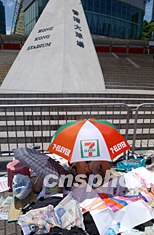 香港超級球迷7月28日忍受烈日煎熬在香港大球場排隊,準(zhǔn)備輪候購買“皇家馬德里”蒞港作賽入場券。作者:洪少葵