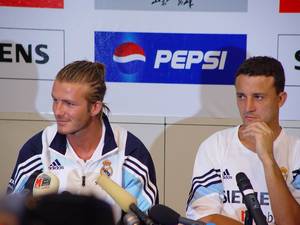 7月30日下午1時(shí),皇馬在紅塔基地召開了第六天的例行新聞發(fā)布會(huì),出席新聞發(fā)布會(huì)的皇馬球員有貝克漢姆、索拉里、塞拉德斯、塞薩爾。新聞發(fā)布會(huì)上,貝克漢姆再次成為媒體追逐的焦點(diǎn),其他球員則顯得有些無所事事。圖據(jù)云南日?qǐng)?bào)網(wǎng)站