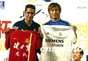 皇馬主教練奎羅斯表示皇馬一定會讓中國球迷看到一場高質(zhì)量的比賽。皇馬隊長勞爾則表示,“非常高興來到中國的首都北京。在昆明集訓(xùn)期間,熱情的昆明球迷讓皇馬球員很是感動。皇馬球員都表示,將在明晚讓中國球迷欣賞到皇馬真正的足球。”
