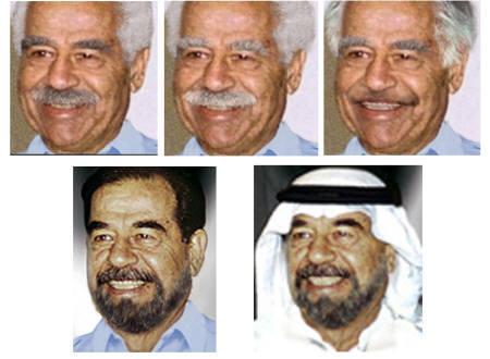 據(jù)路透社報道,這些照片包括通常蓄髭且深發(fā)的薩達(dá)姆若留胡須、把臉刮干凈、白發(fā)或灰發(fā)的模樣,還有一張為他戴著傳統(tǒng)阿拉伯頭巾的樣子。這些照片都已經(jīng)發(fā)給正在伊拉克全力搜索薩達(dá)姆的軍隊。