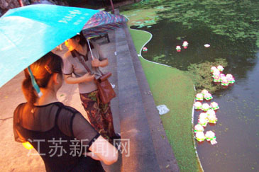 2003年8月3日晚至4日凌晨,南京莫愁湖公園推出“迎七夕莫愁湖放燈游園晚會”,數(shù)千游客冒雨與會。細雨中,對對情侶相依相偎,更添溫馨。