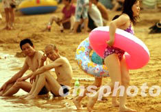 中國(guó)北方近日持續(xù)高溫,海濱沙灘成為游人休閑避暑的好去處。中新社記者:宋吉河
