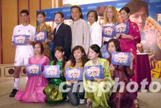 電影《飛龍?jiān)偕?月6日在香港舉行新聞發(fā)布會(huì)。大會(huì)別出心栽安排一眾少女穿上代表各地的服飾,以及穿上“皇馬”球衣的青年,寓意代表世界各地亦將同步放映《飛龍?jiān)偕。中新社記?鄧慶樂