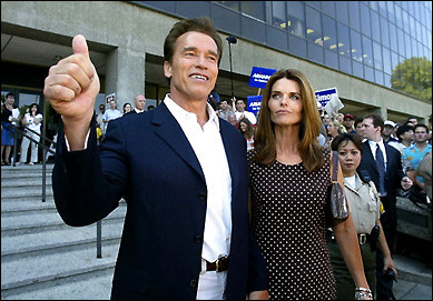 他的妻子是美國政治豪門肯尼迪家族的成員,也是施瓦辛格正式宣布競選州長后首次與他一同露面。她說:“我認為他是一個認真的、富于同情心的、聰明、平靜的男人。我認為他將代表加州的民主黨人、共和黨人和獨立派人士。他是一個天生的領導者。三十年來,他為人民提供了靈感!
