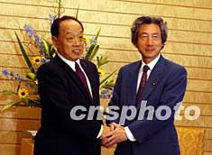 日本首相小泉純一郎十一日下午在首相官邸會(huì)見(jiàn)了正在日本訪問(wèn)的中國(guó)外交部長(zhǎng)李肇星,雙方就進(jìn)一步發(fā)展兩國(guó)關(guān)系等問(wèn)題進(jìn)行了交談。中新社記者:陶光雄