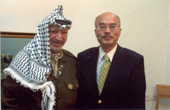 阮:我們?nèi)ツ?月21號我曾經(jīng)到耶路撒冷,當初跟他約了9月22號下午,我記得很清楚是四點半,我們?nèi)ブ凹s好的。我們飛機一降落耶路撒冷機場就聽到新聞,他的官邸已經(jīng)被以軍包圍,不但包圍還轟擊,所以我們等了好幾天,又試圖闖關(guān),不知道他住的地方,巴勒斯坦拉馬拉市到底是什么一種狀況。我們只能從電視看,所以我們曾經(jīng)試圖四處闖關(guān)都沒有成功,我們就倉然而回了。到了今年5月,我們再度跟他接觸,他也同意,因為他對我們鳳凰一直是十分友好的。他也同意讓我們再去,結(jié)果我們要動身的時候發(fā)現(xiàn)以色列…,因為到巴勒斯坦沒有別的路走,只有陸路,約旦,安曼那個地方,陸路要走五六個小時。另外一個是從空中進去,但要經(jīng)過以色列的同意,因為要經(jīng)過特拉維夫的機場,可是特拉維夫機場對香港去的,SARS疫區(qū)的人要檢疫兩到三天。換句話說要住進醫(yī)院里去,我們那個時候也不能到醫(yī)院去住嘛,所以那次又推延了。