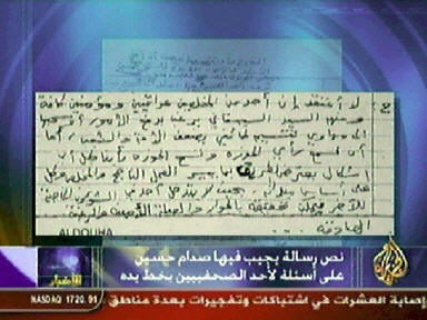 圖:半島臺播出薩達姆親筆信 呼吁發(fā)動圣戰(zhàn)