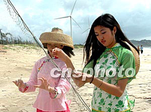 八月十四日,第二屆維可倚南方新絲路模特大賽入圍的三十名選手在汕尾紅海灣進(jìn)行外景拍攝,靚扮南海魚(yú)家女。作者:劉衛(wèi)勇