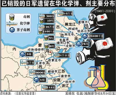 資料:已銷毀的日軍遺留在華化學彈、劑分布圖
